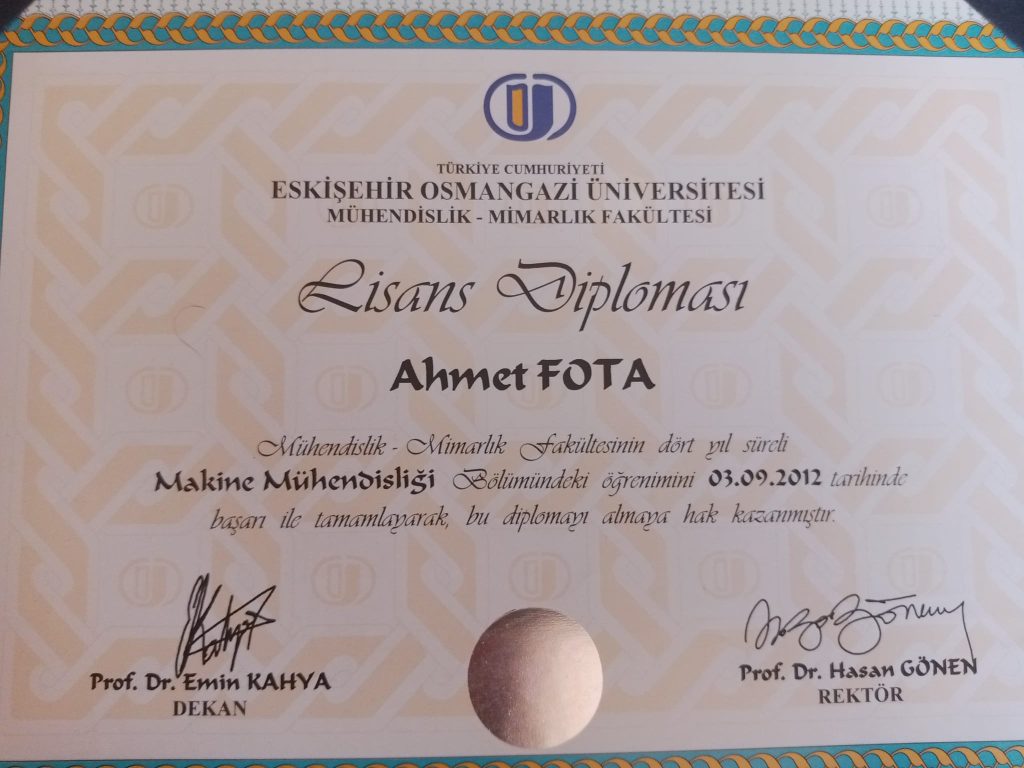 Makine mühendisiyim. Eskişehir Osmangazi Üniversitesi mezunuyum (1990, Kdz. Ereğli doğumluyum). Yangın söndürme sistemleri alanında uzman proje müellifi olarak görev yapmaktayım.